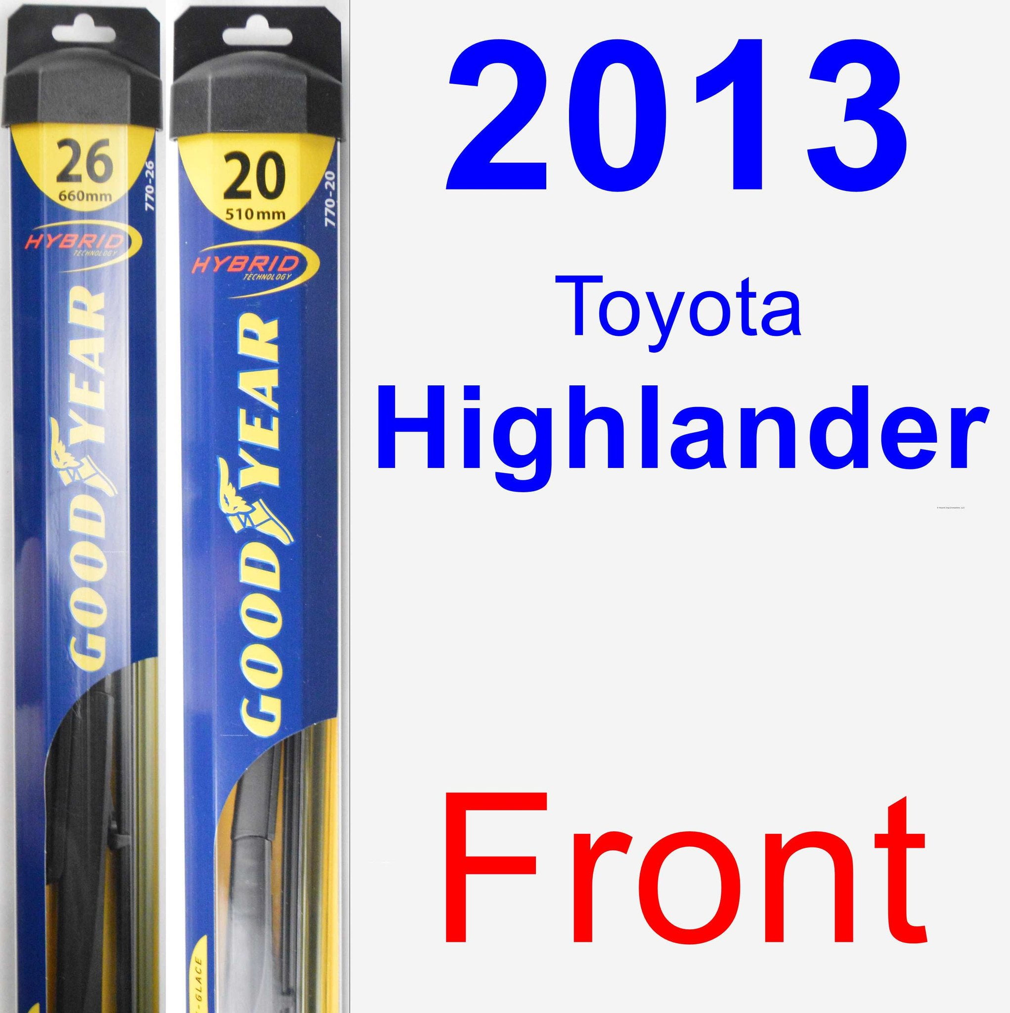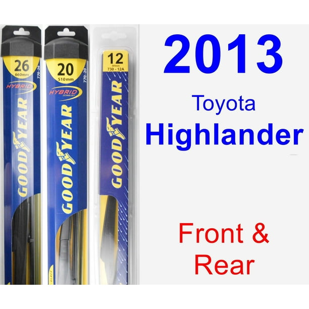 Need mpg information on the 2013 toyota highlander? How to change the wiper blades on your toyota highlander. Highlander toyota wiper blade front and rear set. Find the correct wiper blade size for your vehicle. The tire size for your toyota highlander depends upon the year of manufacturer.